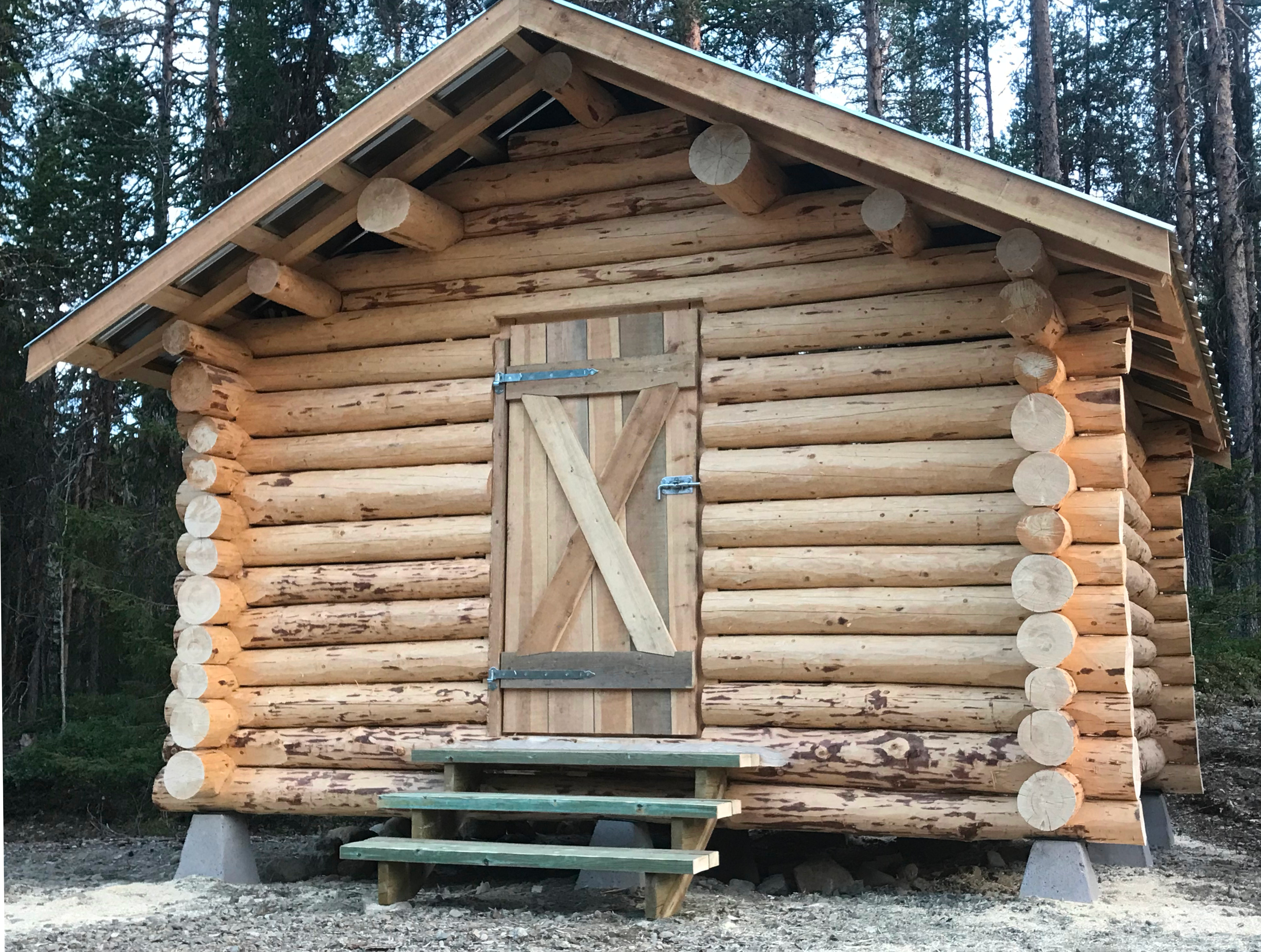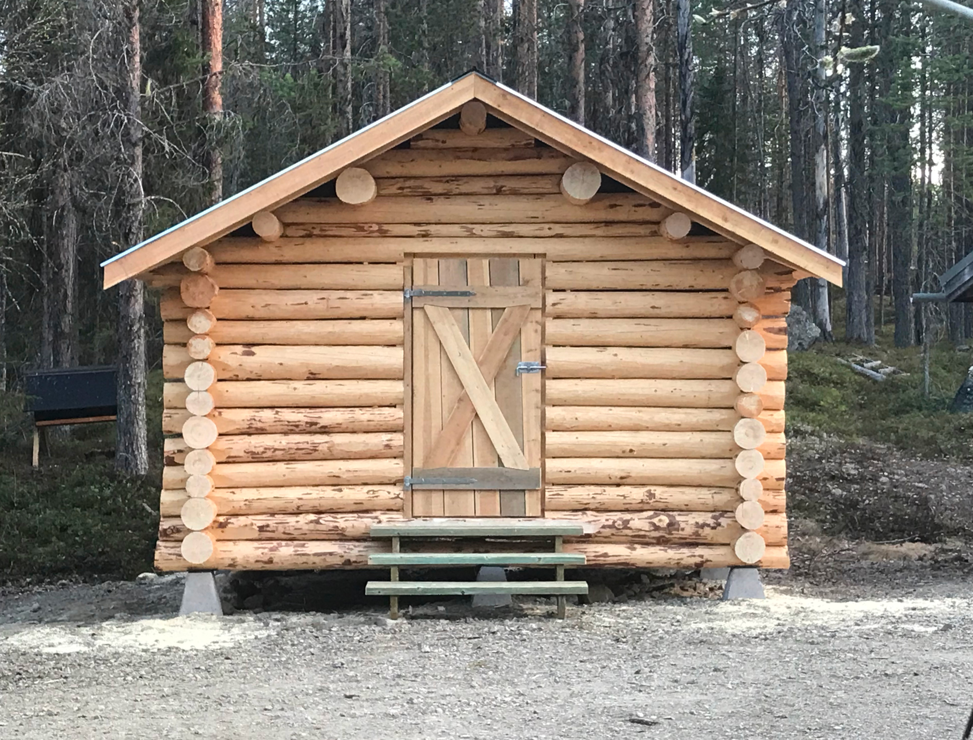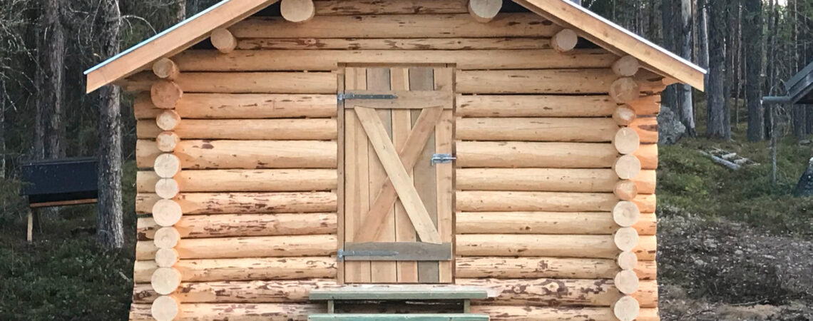 Glestimrad vedbod uppförd i Björlandets Nationalpark på beställning av Länsstyrelsen i Västerbotten. Rundtimmer Knuttyp: Rännknut Mått: 3,8 x 3,8 meter Projektår 2022